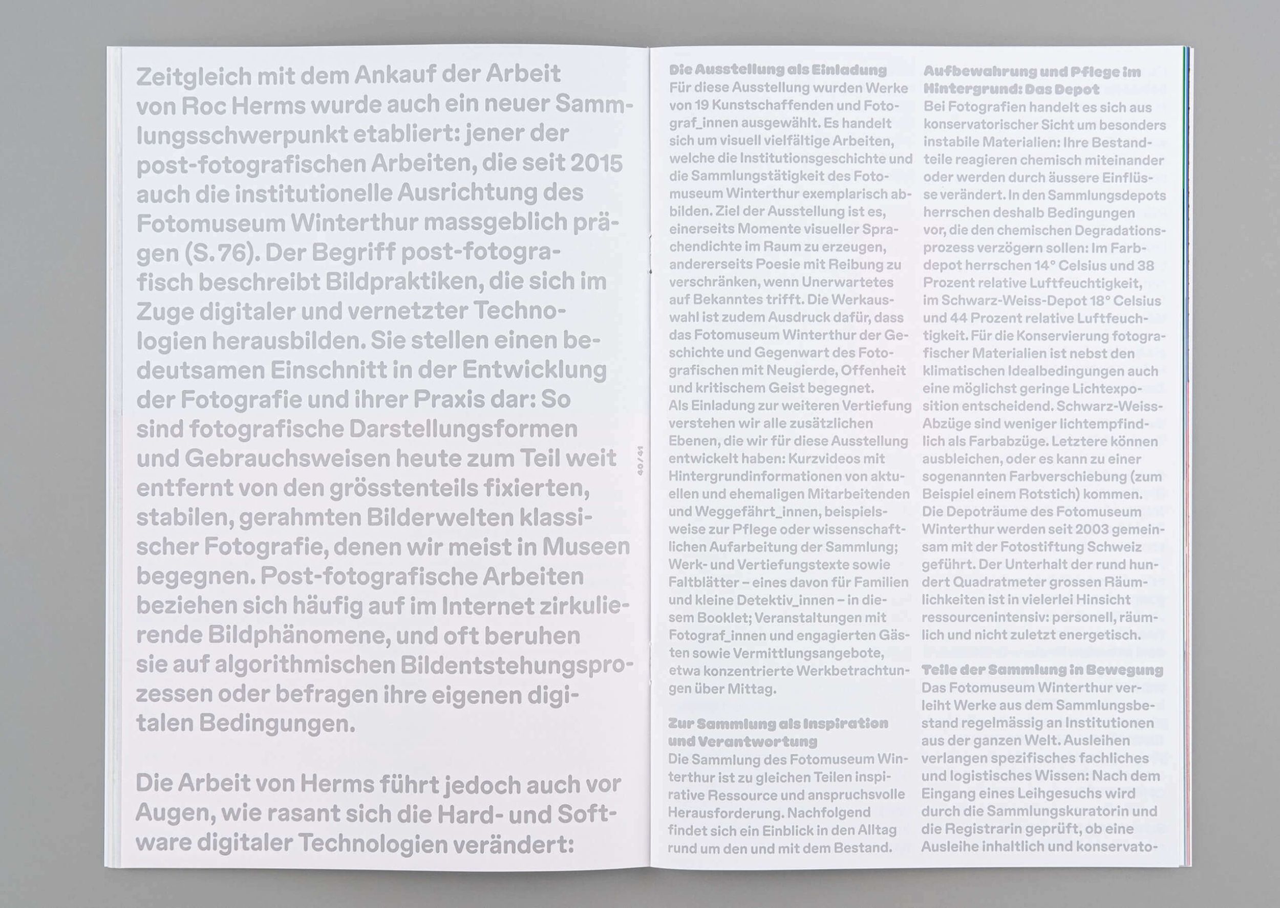 The collection of the Fotomuseum Winterthur includes works by international photographers as well as young, interdisciplinary artists. The focus is on a selection of works relevant to contemporary issues – five main thematic areas have emerged. These themes are reflected visually in the color concept. With Aurelia Peter.